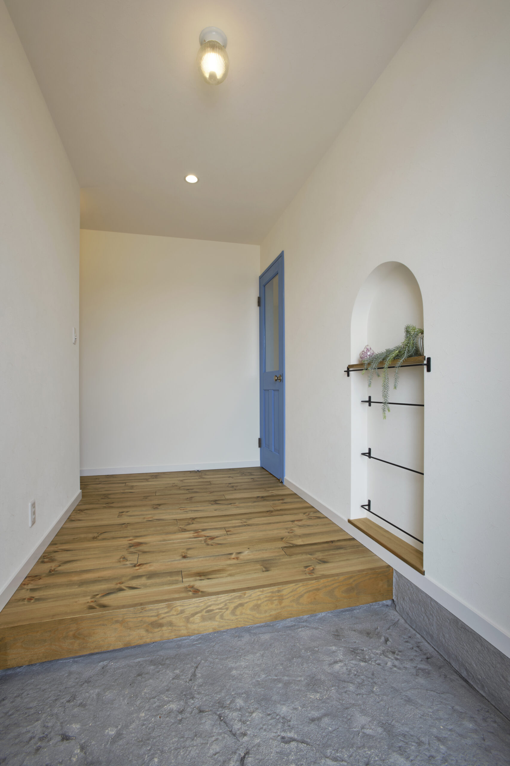 玄関の中は、白とブルーのコントラストが可愛らしい空間がお出迎え☆°˖✧☆✧˖° 玄関土間は、Mamanオリジナルのデザインコンクリートを使用。